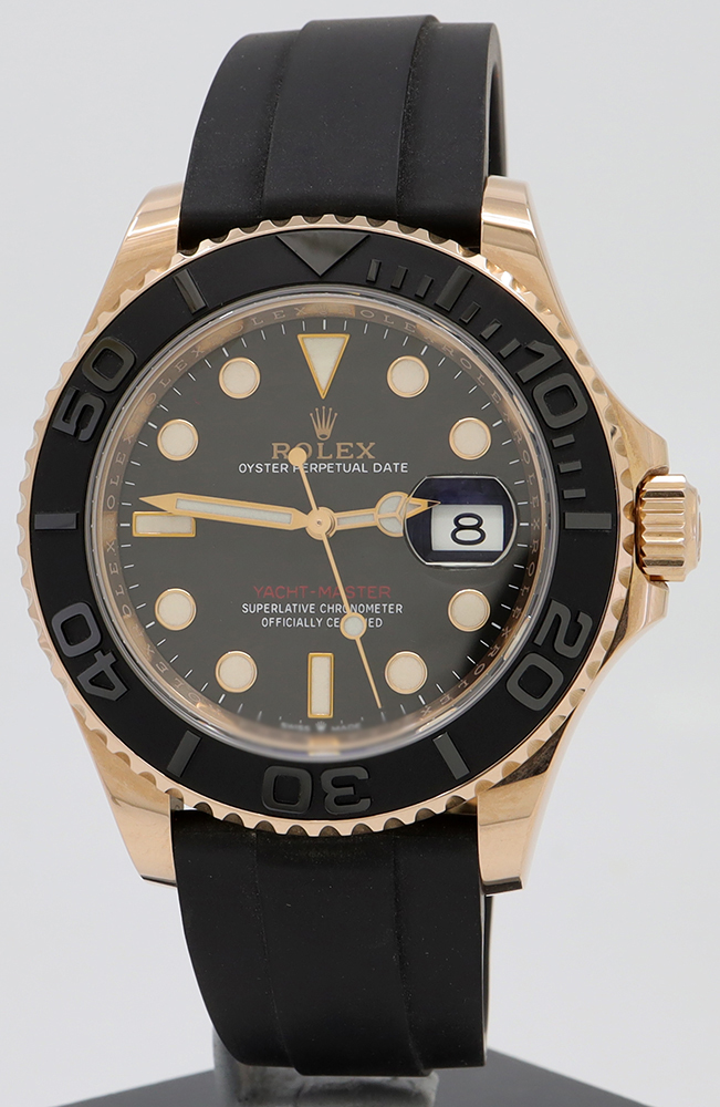 Rolex ref 126655 18k Rose Gold Auto Black Dial Oyster Perpetual Yacht-Master 40 on Oysterflex w/Everything